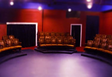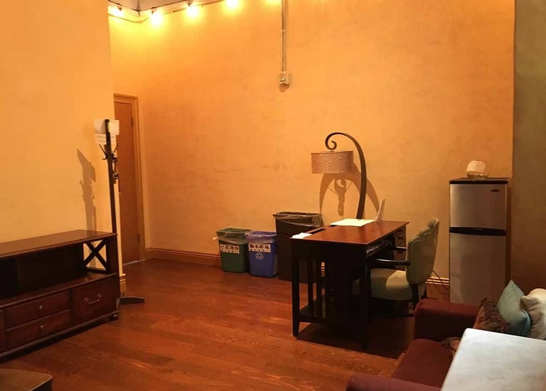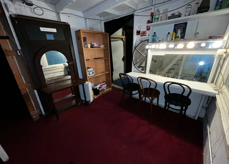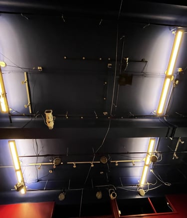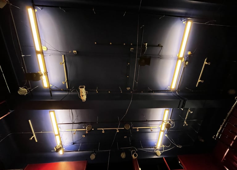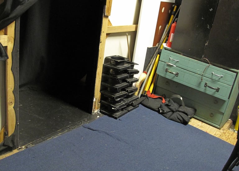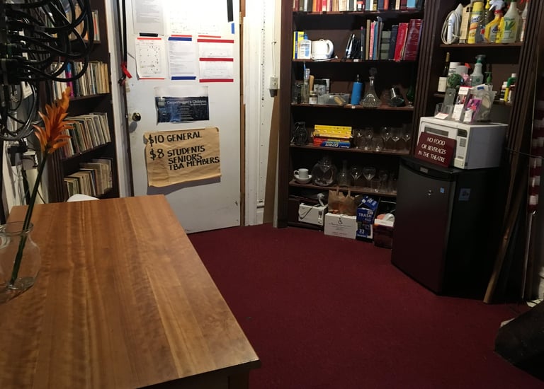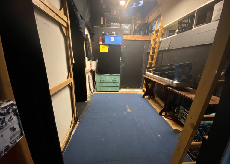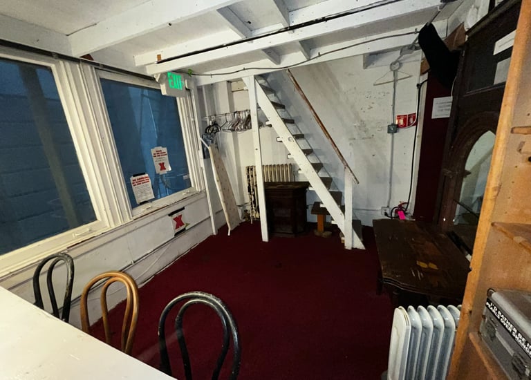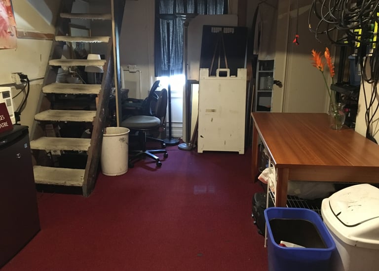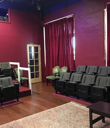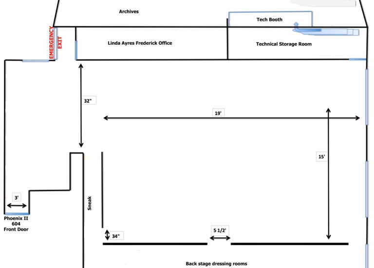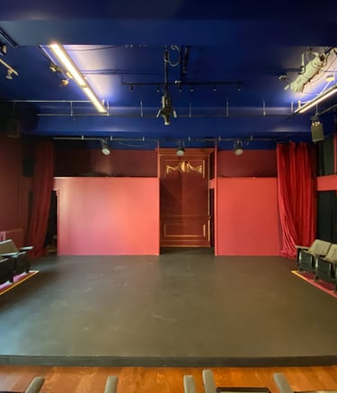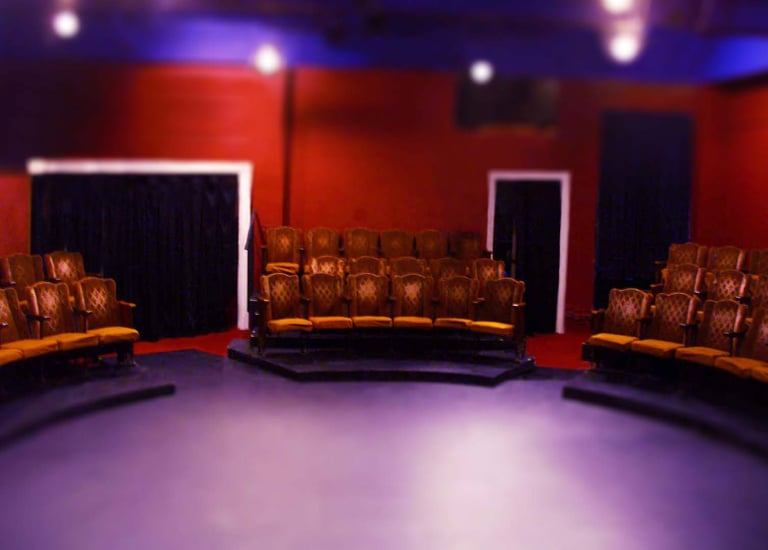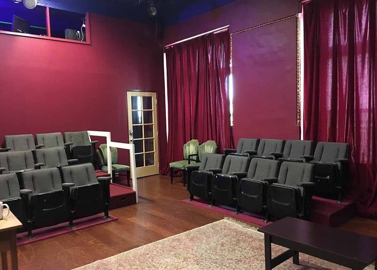 The Sixth floor Phoenix II theatre is our newest 49 seat theatre across the hall from the Main Stage. The available stage area is 12 feet across and 10 feet deep with 13 foot ceilings and 4 entrances to choose from. There are two small dressing room areas backstage. There are some unique upper level acting areas possible. This venue has a fixed LED lighting system with QLC+ lighting software. No light board. We do have some traditional fixtures (4- fresnels, 2- Source 4’s, 1- 3.5 Altman) that can be moved and refocused.